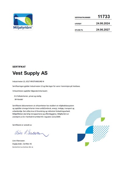 Vi er sertifiserte i henhold til: